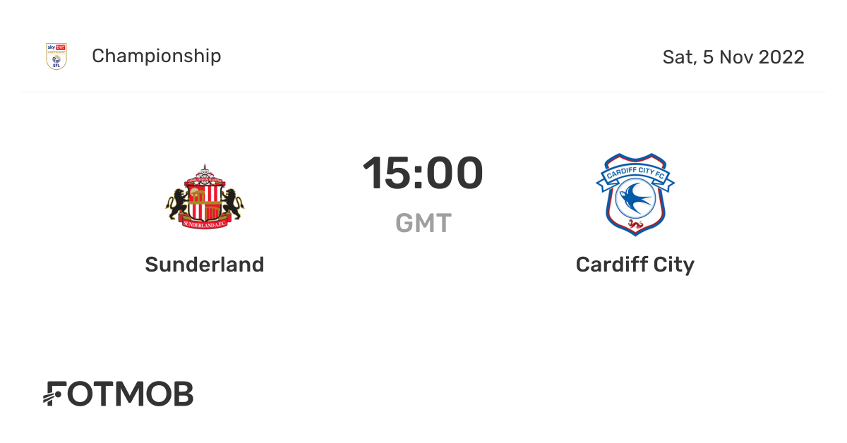 Season Date Home Score Away Competition. Predicted Sunderland lineup vs Cardiff City 4-2-3-1 Potential Sunderland starting lineup. Cardiff City is an upcoming Football event that takes place on Nov 05 at 0300 PM.